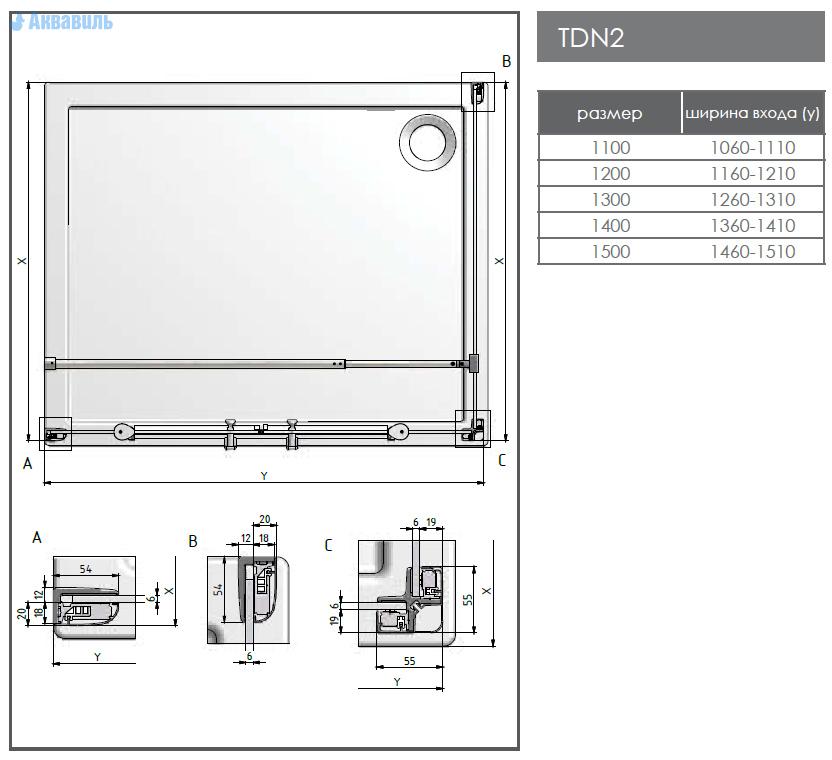Душевая дверь Roltechnik TDN2/1100 BRILLANT (Transparent)