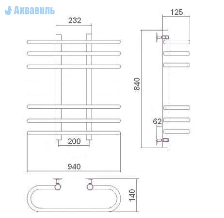 Высота полотенцесушителя .............................................. 840 мм.