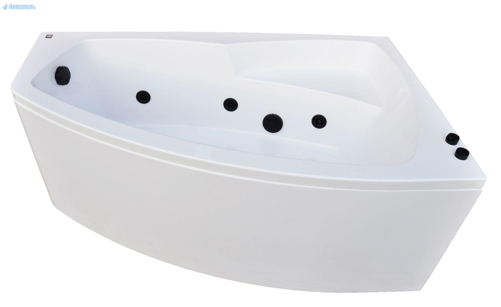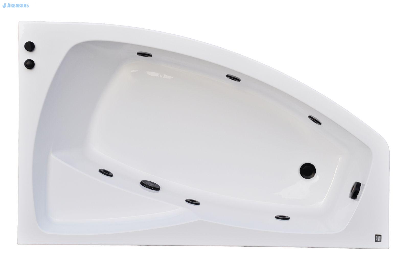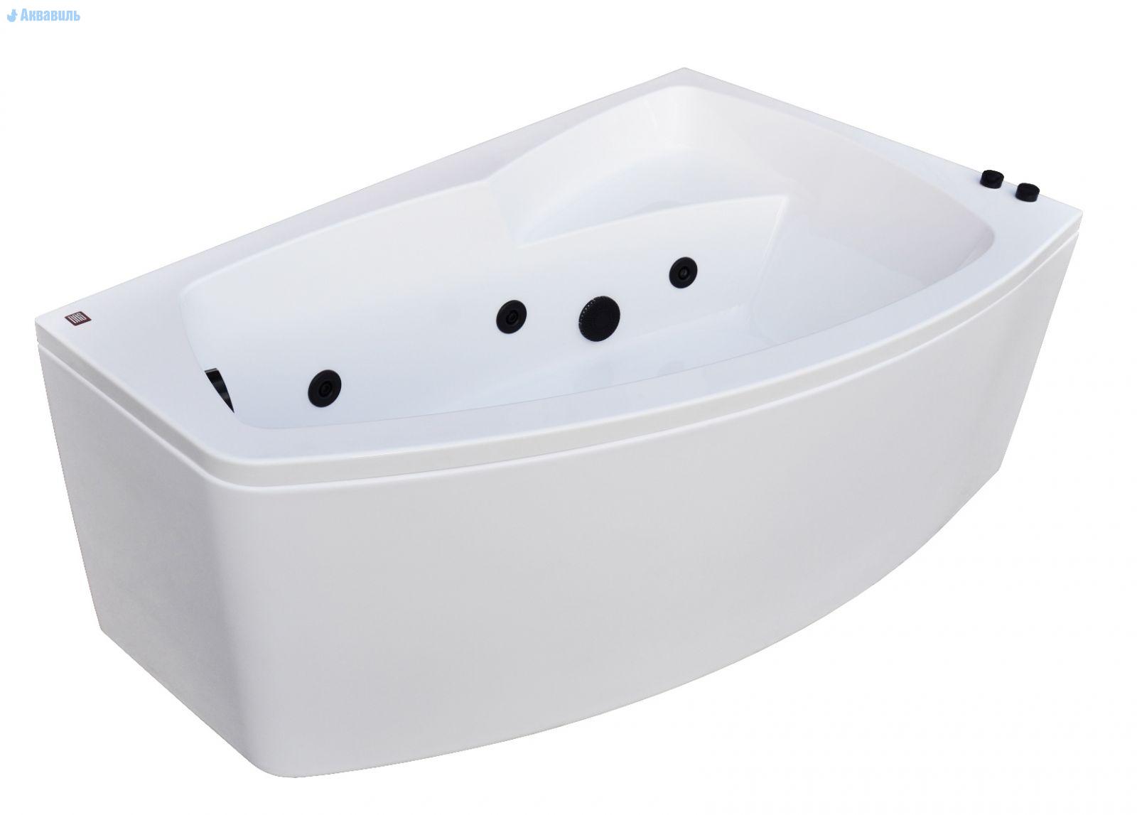 Гидромассажная ванна Камея-Pro 150х90 правая, асимметричной формы, с форсунками черного цвета. Идеально подходит по своим размерам для малогабаритной ванной комнаты. Изготовлена из 100% литьевого акрила (PMMA) Altuglas (Австрия), толщиной 5 мм.