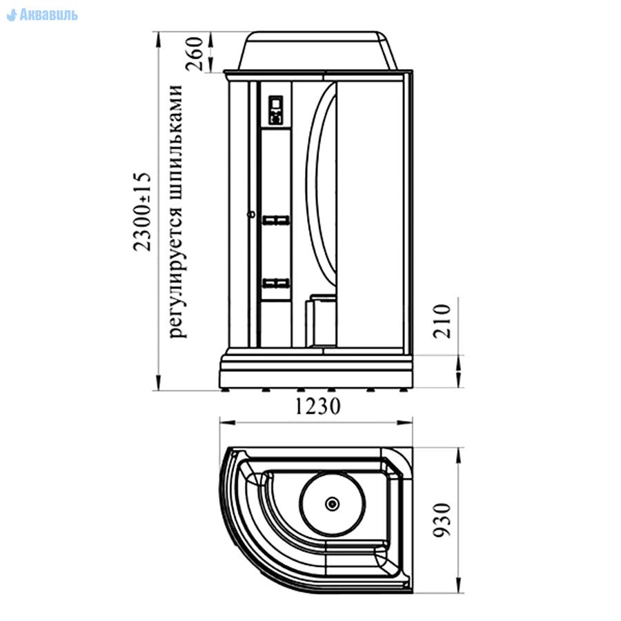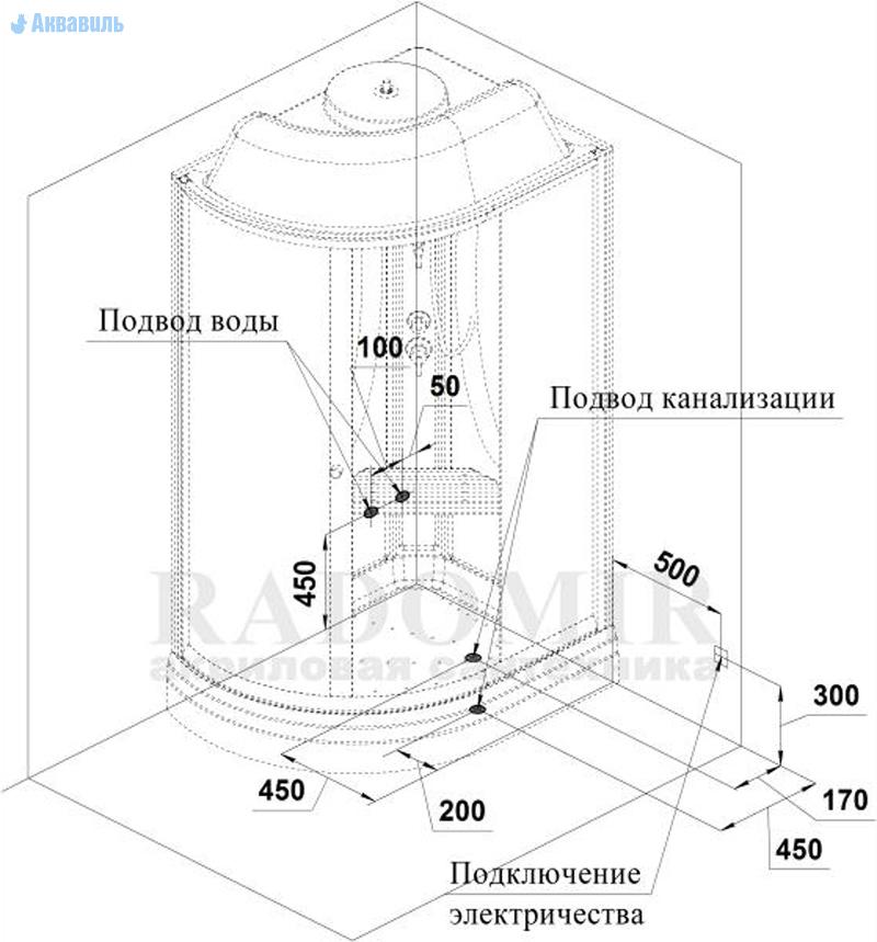 Душевая кабина устанавливается в угол и может быть изготовлена в правом или левом исполнении.