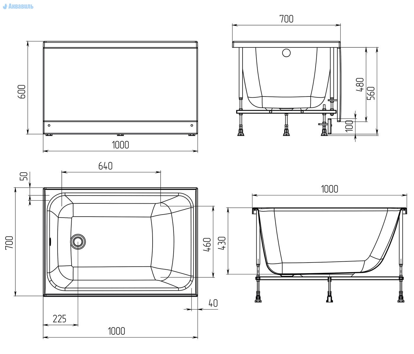 Производитель 1 Marka Россия. Гидромассажная ванна Lett 100 на 70, прямоугольной