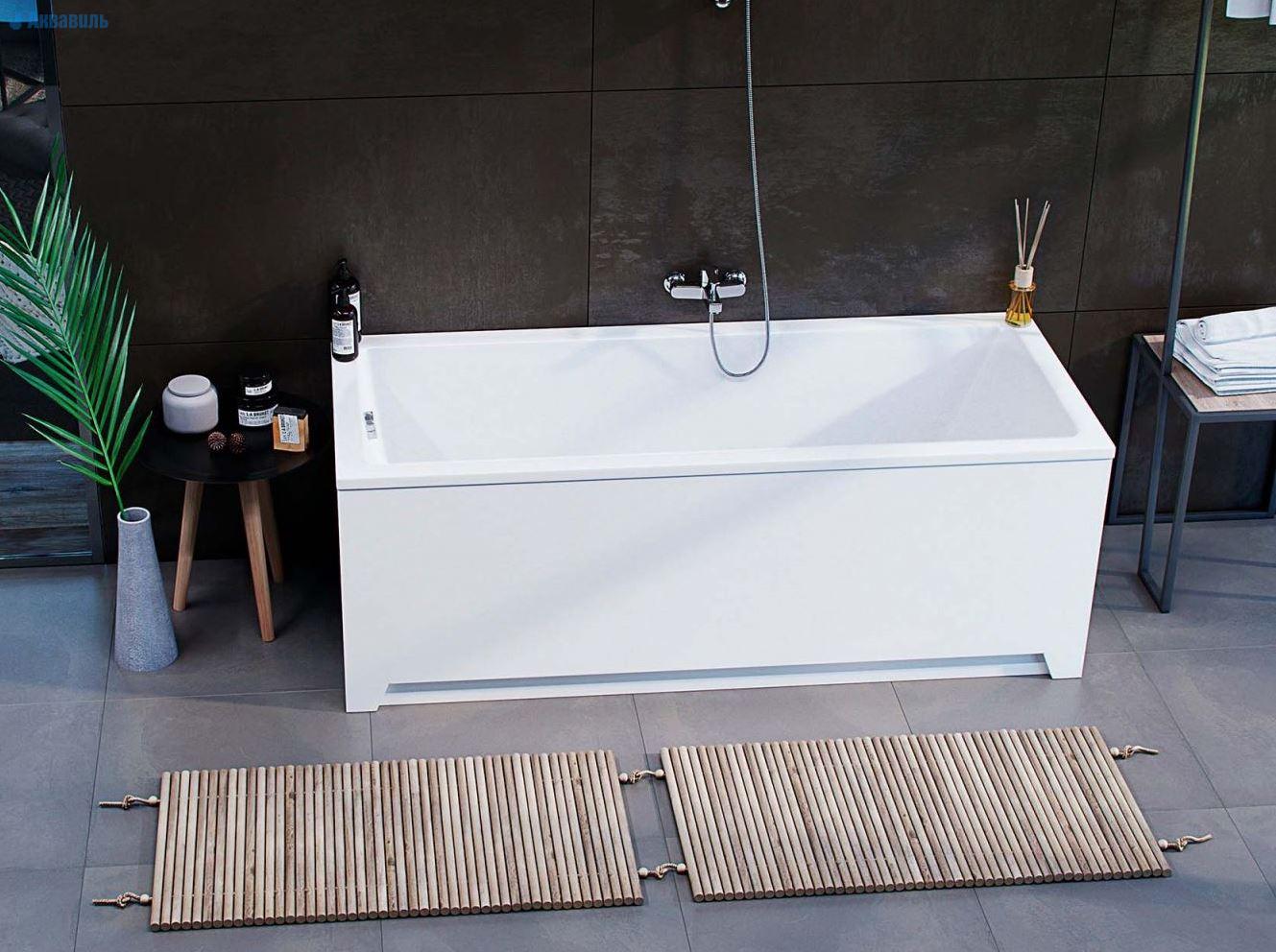 Прекрасно смотрится в установленном виде между стен (только с фронтальным экраном), отдельно стоящая с фронтальным экраном, одним или двумя торцевыми экранами. Подходит для установки в подиум.