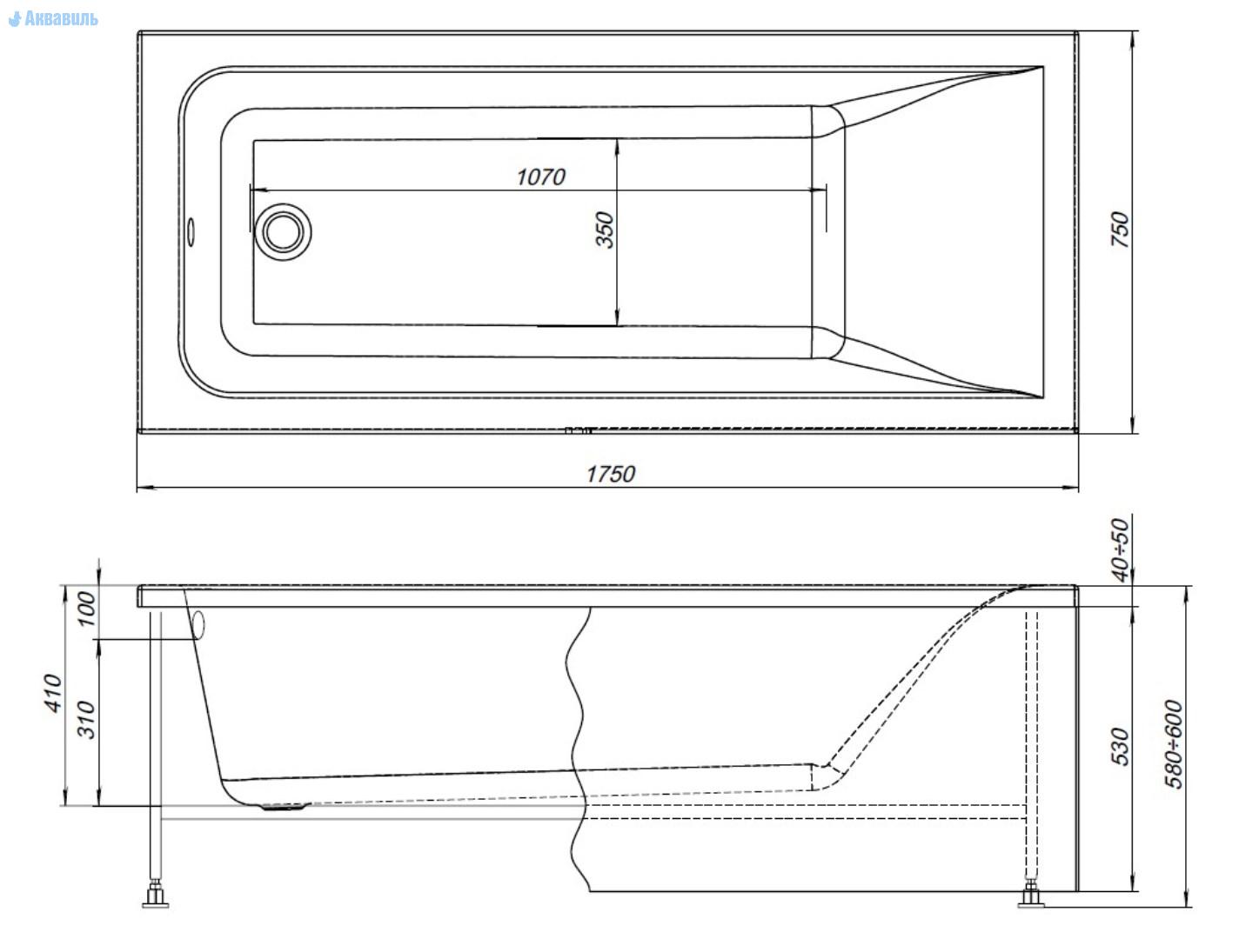 Карниз для ванны Aquanet Aura 175 прямой (подробнее)