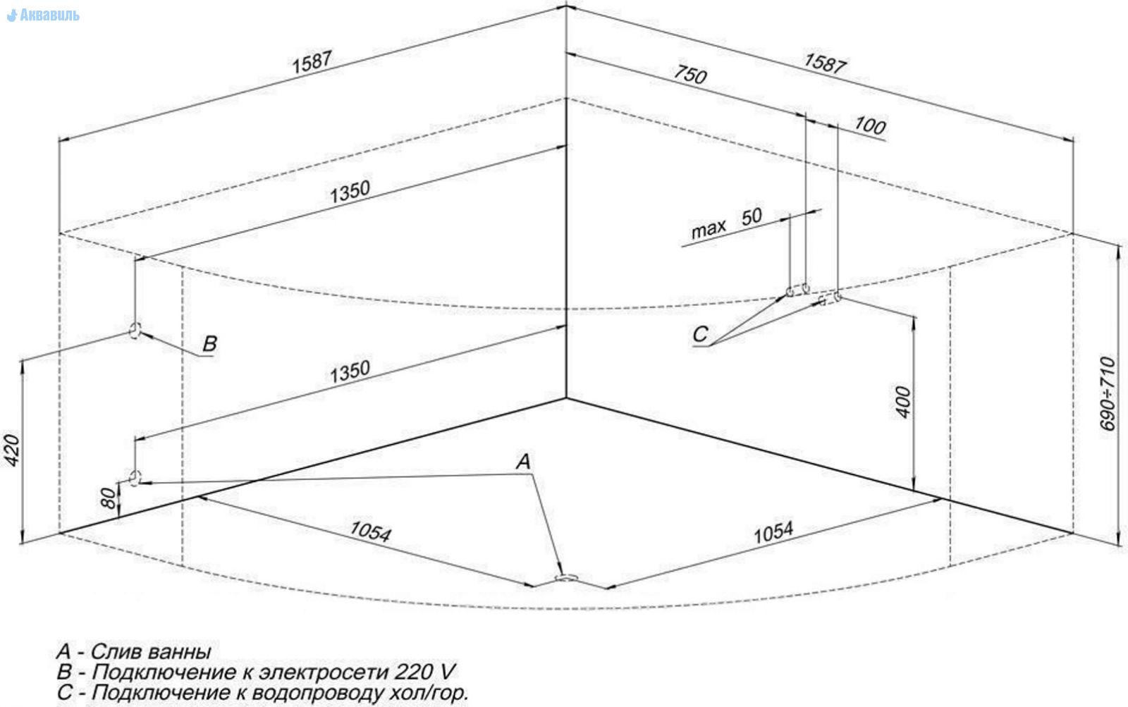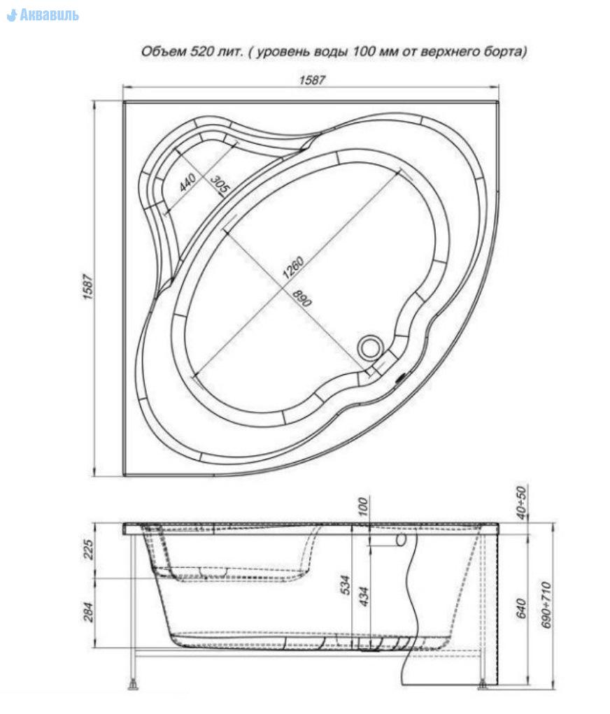 Производитель Акванет Россия. Гидромассажная ванна Сантьяго 160 на 160, угловой