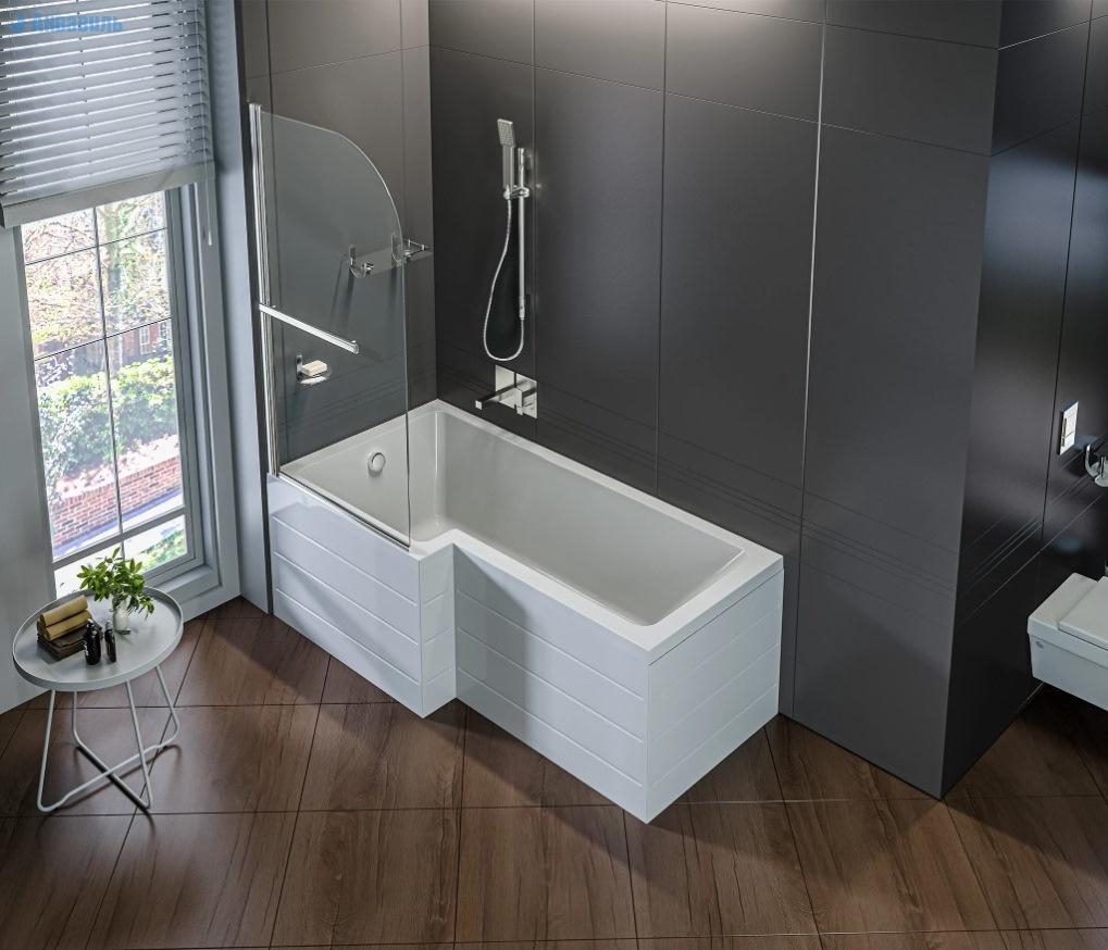 Прекрасно смотрится в установленном виде в углу ванной комнаты. Подходит для установки в подиум.