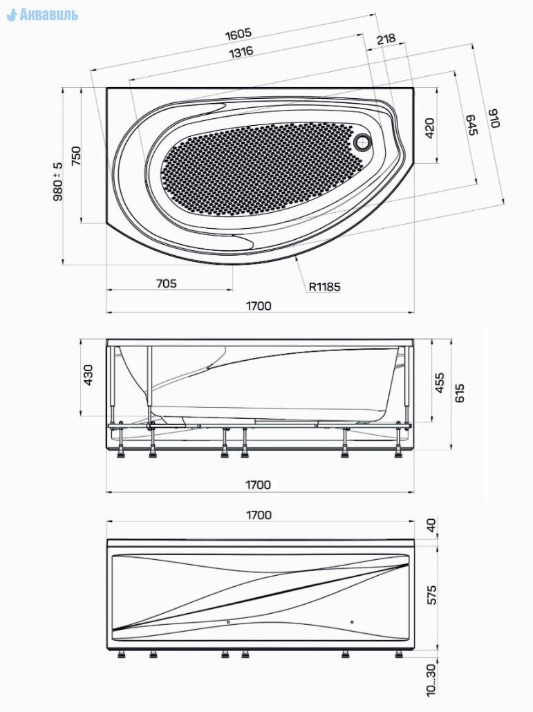 Страна производства: Россия. Гидромассажная, асимметричная ванна Damelia 170x100 L, производства компании 1Marka, сделана для небольших ванных, с вариантом установки в левый угол комнаты. Изысканная форма этой модели должна прийтись по вкусу любителям минимализма. В стандартную комплектацию входит: