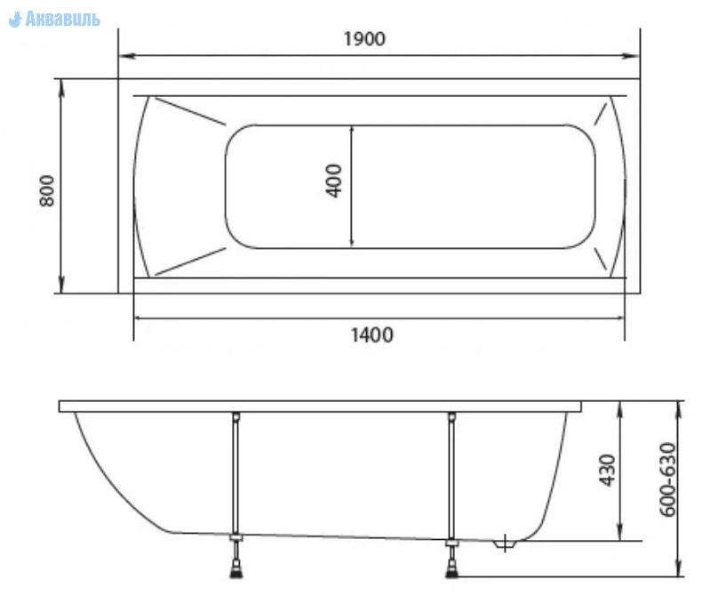 Производитель Marka One Россия. Гидромассажная ванна Modern 190 80, прямоугольной