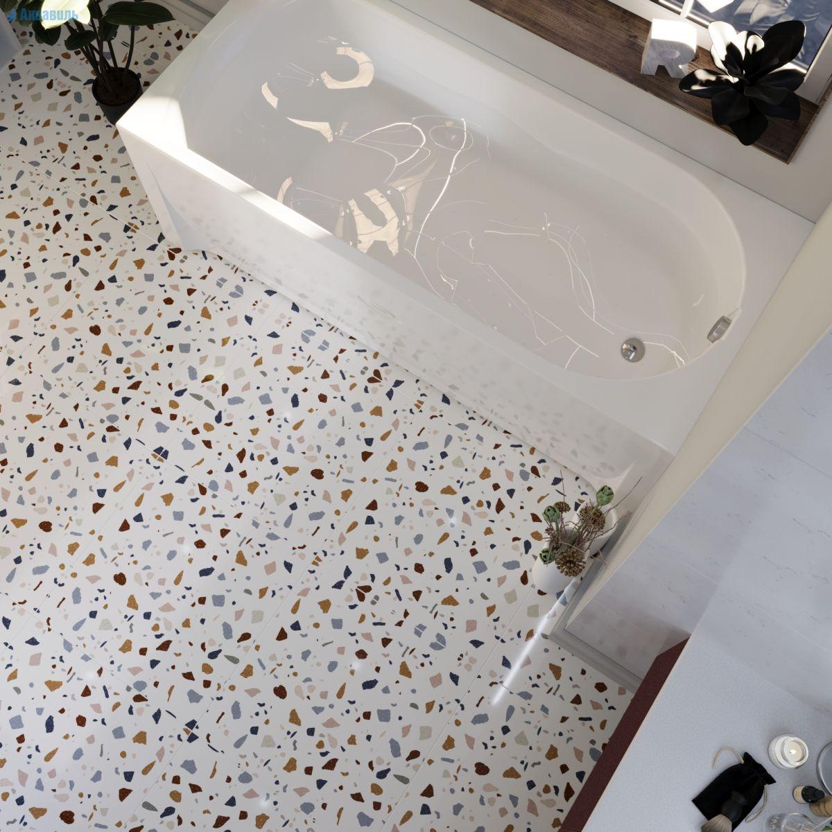 Прекрасно смотрится в установленном виде между стен (только с фронтальным экраном), отдельно стоящая с фронтальным экраном, одним или двумя торцевыми экранами. Подходит для установки в подиум. Отлично подходит для таких дополнительных опций, как гидромассаж или современный каскадный смеситель.