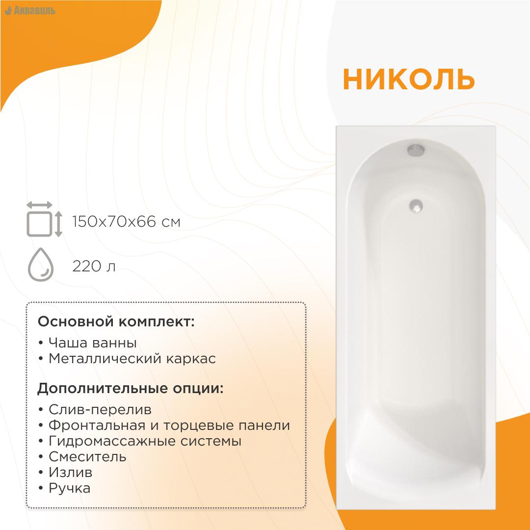 Гарантия производителя: 10 лет. Страна производства: Россия. Отдельно стоящая прямоугольная ванна Радомир Николь 150х70, имеет оригинальный дизайн, уменьшиный размер по длинне и прекрасно подойдет для самой маленькой ванной комнаты в современном стиле. Привлекательный внешний вид , классическая форма сочетается с удобным внутренним пространством.Дно ванны обладает антискользящим покрытием.Сливное отверстие в ногах. В комплект входит чаша-ванна, и усиленный каркас. Дополнительно комплектуется фронтальной и торцевой панелью, а также сливым устройством. Возможна установка гидромассажного оборудования.
