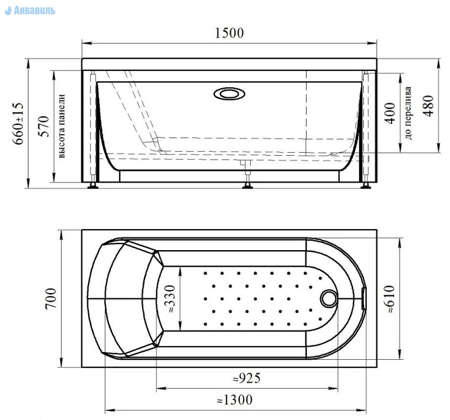 В стандартную комплектацию входит: чаша-ванна, усиленный каркас. Дополнительно комплектуется передней и торцевой панелью, устройством слива-перелива.