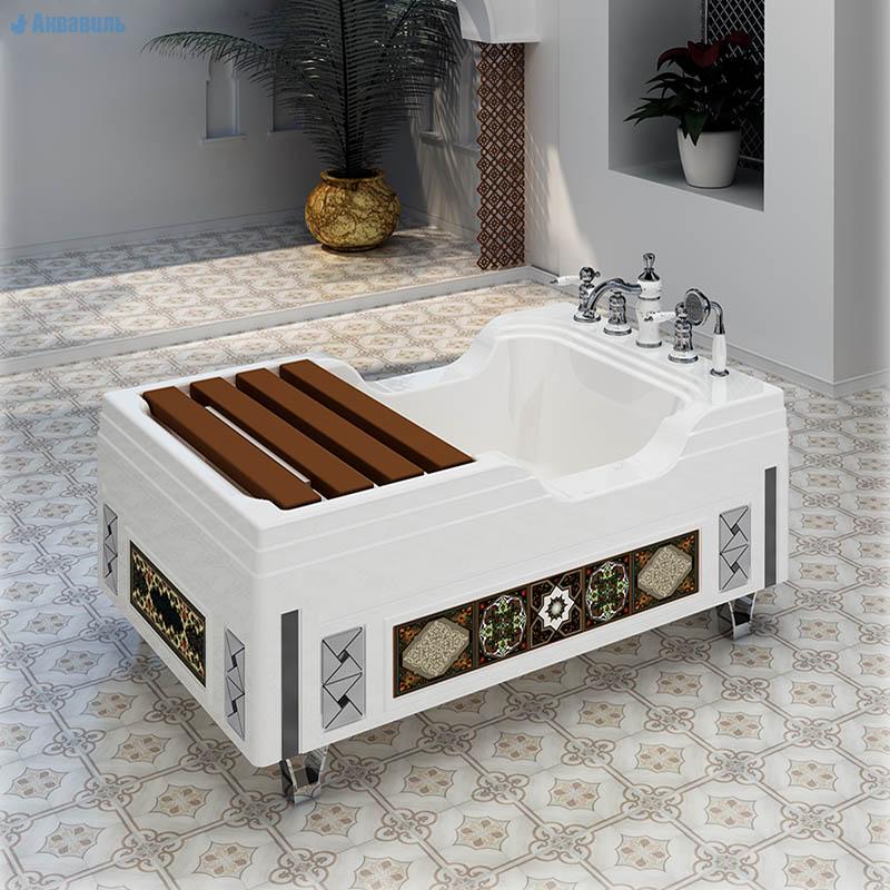 Акриловая ванна Радомир Тахарат - Выполнена в арабском стиле и соответствует всем религиозным канонам ислама. Она представляет собой белую чашу прямоугольной формы с размерами 120х80 см. А приемлемая цена дает возможность всем желающим приобрести акриловую ванну данной марки! Данная модель преднозначена для благочестивых, духовных целей, с глубоким уважением к мусульманскому обществу и исламской культуре. Благодаря стараниям специалистов компании "Radomir", ванна для мусульман получилась удобной, надежной и красивой.