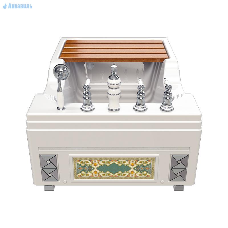 Гарантия производителя: 3 года. Страна производства: Россия. Тахарат – ряд религиозных действий в исламе, которые совершаются перед молитвой и направлены на очищение души и тела. Одним из обязательных условий является мытье рук, лица и ног. Чтобы мусульмане могли совершать малое омовение с удобством и по всем правилам, компания «Радомир» изготовила специальную ванну для тахарата, с одноименным названием. . В комплект входит: чаша-ванна, рама-подставка с декоративными ножками, слив-перелив, комплект панелей, сиденье из террасной доски. Возможно комплектование дополнительными опциями.