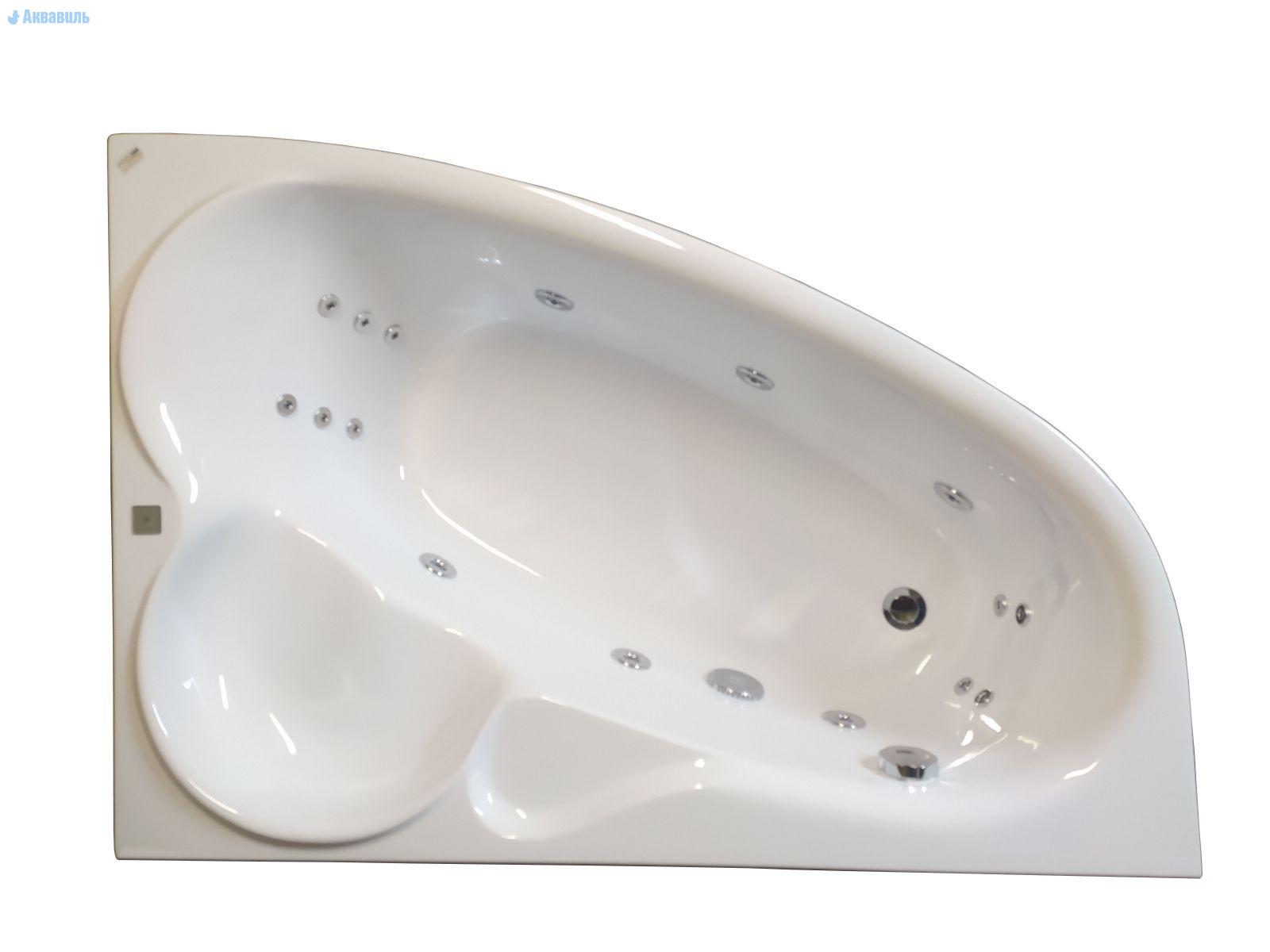 Акриловая ванна 135 см. Релисан Ariadna с гидромассажем, асимметричной формы. Модель, несмотря на свои скромные размеры, имеет удобну и достаточно объемную чашу. В углу ванны удобное сиденье, его можно приспособить и как полочку для душевых принадлежностей, а можно разместить туда свечи, создав уют спа-зоны. В комплектацию уже входит какркас, устройство слива-перелива и система гидромассажа, которая состоит из 6-и пластиковых форсунок, кнопок управления и двигателя мощностью 900 Вт. Ванна прекрасно подходит для установки врезного смесителя и хромотерапии.