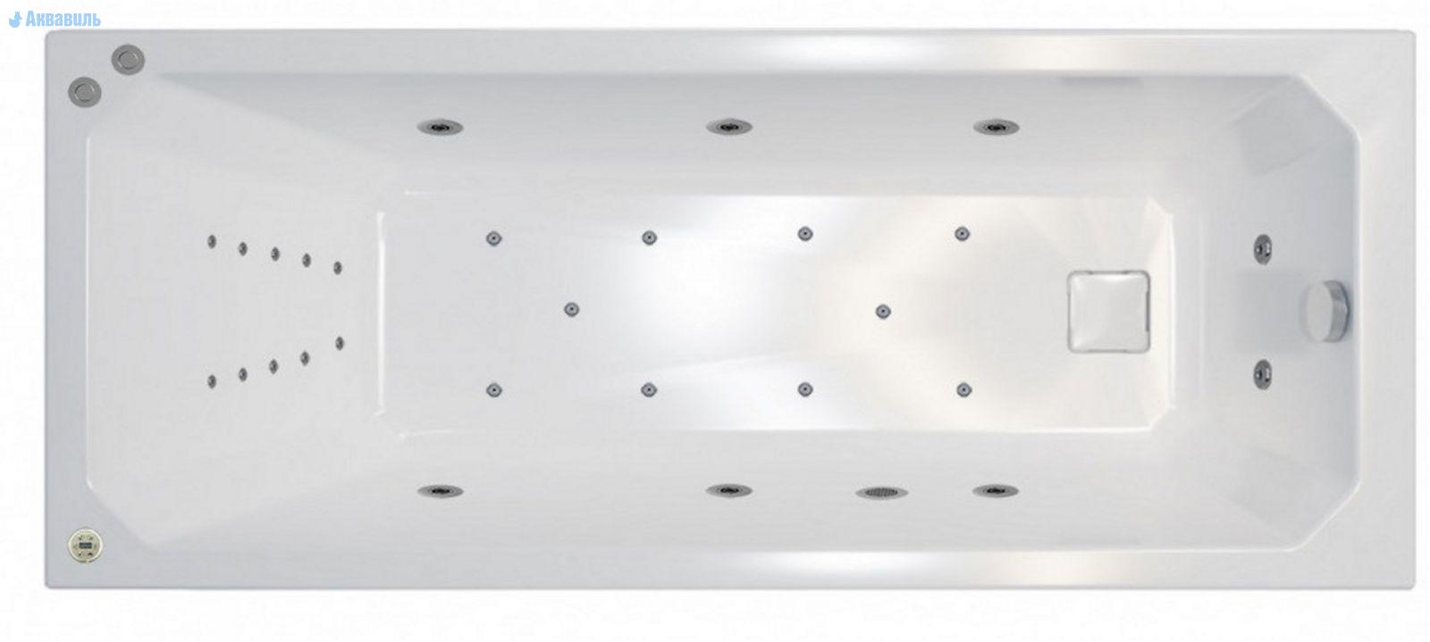 Электронная система управления. Позволяет отказаться от размещения большого количества обычных пневматических кнопок, тем самым экономит место на борту ванны. С помощью компактной и стильной панели можно управлять всеми функциями гидро, аэро массажных систем, хромотерапии. В комплект входит важная функция защиты от запуска гидромассажной системы без воды.