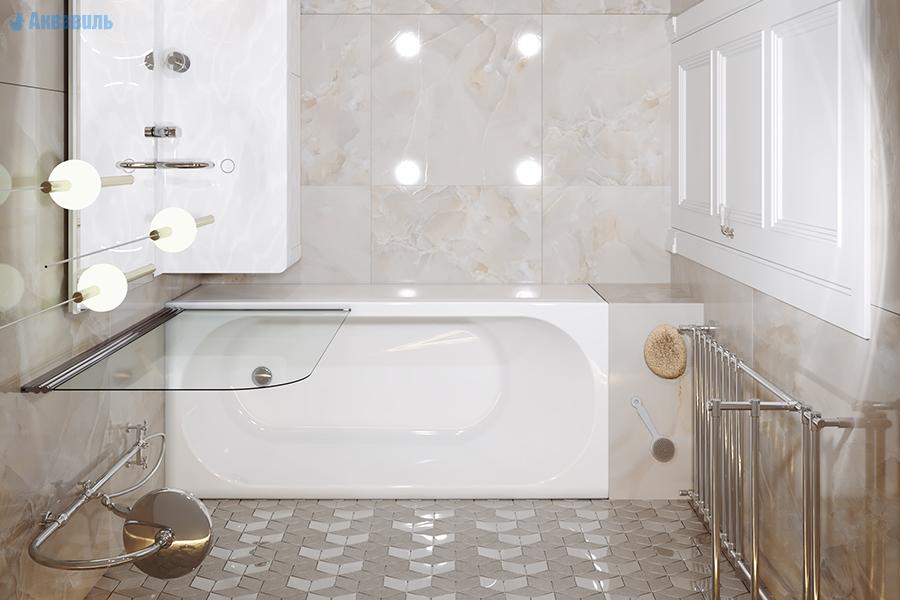 Закрывает пространство между фронтальным бортом ванны Токио 180х70, и полом. Легкосъемная, для быстрого доступа связанного с санитарным обслуживанием ванны, сифона и т.д. Крепление: верх на пластиковых защелках, низ на саморезах с декоративными заглушками. Изготовлена из сэндвич листа ( ABS - 80%, PMMA - 20%) , толщиной 3 мм.