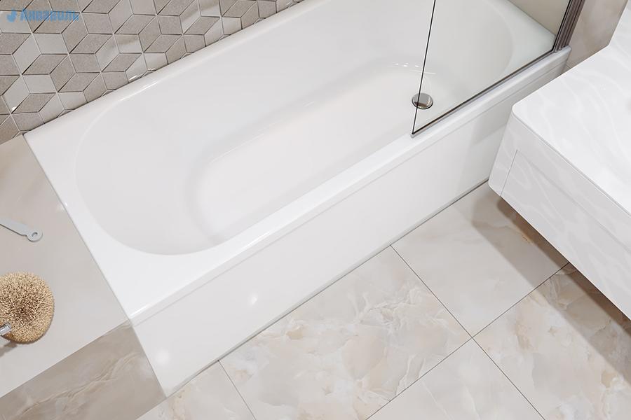 При желании можно установить в подиум, обложить кафельной плиткой, не закрывая ванну фронтальной панелью.